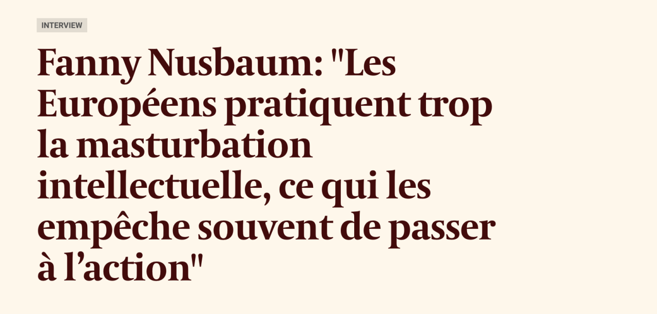 L'Echo Belgique | Fanny Nusbaum : « Les Européens pratiquent trop la masturbation intellectuelle…»