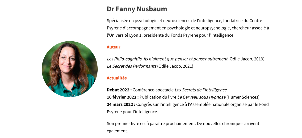 ETX Studio | Mylène Bertaux | "L'intelligence n'est pas une question de QI mais d'état d'esprit " selon la neuroscientifque Fanny Nusbaum